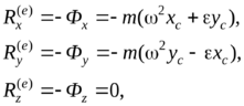 При анализе внешней виброактивности плоского механизма часто ограничиваются определением составляющих главного вектора и главного момента внешних реакций, лежащих в плоскости движения. Если располагать оси 0х и 0y в этой плоскости, то речь пойдет о компонентах