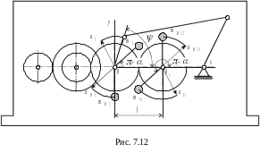 равновешивание первых гармоник сил инерции. Рассмотрим некоторый произвольный плоский механизм (рис.7.12), состоящий из передаточного и исполнительного механизма. Пусть входное звено исполнительного механизма (кривошипа) вращается с постоянной угловой скоростью . Полагая, что активные силы для машины являются внутренними, имеем