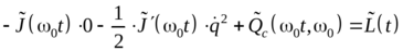 – возмущающий момент, ранее введенный в качестве характеристики внутренней виброактивности механизма. Таким образом, причиной неравномерности вращения ротора двигателя в установившемся режиме является внутренняя виброактивность механической системы, обусловленная явной зависимостью приведенного момента инерции и приведенного момента сил сопротивления от обобщенной координаты q. В левую часть уравнения (8.23) подставим первое приближение