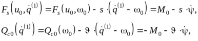 месте с тем необходимо отметить, что представление решения в виде ряда Фурье может оказаться неприемлемым в тех случаях, когда в цикловой машине при установившемся движении возникают скачки возмущающего момента, вызванные какими-то ударными процессами (например, в прессах), или скачками второй производной от функции положения (в кулачковых механизмах). В таких системах на сравнительно плавное движение машины, описываемое решением вида (8.37) – (8.38), накладываются свободные колебания, вызванные скачками возмущения. Эти колебания принято называть сопровождающими. Следует, однако иметь в виду, что чаще всего адекватное рассмотрение установившихся решений в системе со скачками возмущений требует перехода к упругой модели механизма. Подробно такие упругие системы рассмотрены в [4].