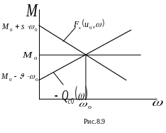(рис.8.9). Поэтому в этот момент времени разбег начаться не может. При неподвижном роторе начнется возрастание момента в соответствие с динамической характеристикой двигателя, в которой следует положить