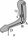 оэффициент к1 показывает, во сколько раз больше рабочей нагрузки Р должна быть движущая сила Q, приложенная к входному звену. Нерационально проектировать механизмы с большим значение коэффициента к1. Обычно в общем машиностроении полагают, что допустимое значение [к1]<3. В других случаях значение этого коэффициента может быть совершенно другим. Например, можно представить модель руки человека в виде механизма, в котором роль звеньев выполняют плечевой и локтевой суставы, а поперечно-полосатые мышцы-сгибатели (бицепсы) моделируются звеньями с поступательной кинематической парой. Из соотношения плеч АВ/DB=1:10 следует, что движущая сила Q, создаваемая бицепсами, в 10 раз больше, чем сила тяжести поднимаемого груза Р. Однако, во сколько раз проигрываем в силе, во столько раз выигрываем в скорости. Вероятно, в процессе эволюции этот выигрыш оказался важнее.