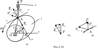 Для того, чтобы найти длину отрезка ОВ, построим план скоростей (рис. 2.18, в). План скоростей – это чертеж, на котором изображены в одном масштабе в виде отрезков векторы, пропорциональные по модулю и совпадающие по направлению с векторами скоростей точек механизма. На плане скоростей кулачкового механизма векторы удовлетворяют следующим условиям: