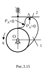 лоский толкатель не может контактировать с вогнутым участком профиля кулака (рис. 3.15), поэтому заданная функция перемещения толкателя s(q) воспроизводится с ошибками. Ч