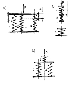 где Р – общая сила нагрузки, действующая на систему пружин, а λ – бщая деформация системы.