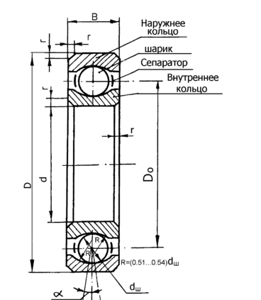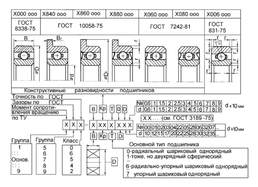 Внутренний диаметр, серия, тип шарикоподшипника и его конструктивная разновидность заложены в условном обозначении по ГОСТ 3189-89.