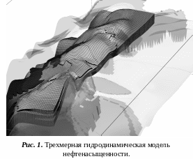а основе цифровой геологической модели были проведены дополнительные построения на базе программного пакета TEMPESTMore с целью создания гидродинамической модели. Данный пакет предназначен для оперативного анализа геометрии гидродинамической сетки (рис.1), заложенных в модель полей коллекторских свойств и получаемых в процессе расчётов полей (насыщенности, давления, вязкости, относительной проницаемости и т.д.), а также динамики технологических показателей.