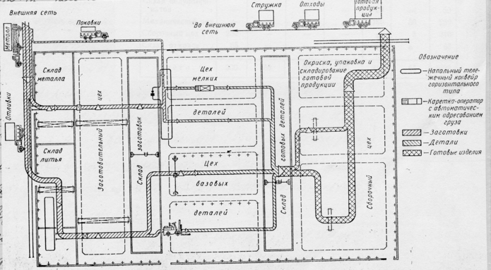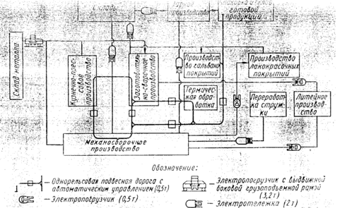 Рис.10. Схема организации межцехового перемещения грузов завода мелкосерийного производства.
