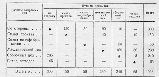 Типы и количество межцехового транспорта определяется исходя из грузооборота, которая может быть посчитана по шахматной ведомости, где фиксируются все перемещения внутри завода и со стороны. Таблица 2.