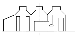 Форма одноэтажных производственных зданий должна быть наиболее простой, в виде прямоугольника (или квадрата), так как затраты на строительство здания сложной конфигурации увеличиваются. Однако исходя из условий производственного процесса, вентиляции, освещения, необходимости избежать внутренних водостоков, а также из других соображений, приходится применять для некоторых цехов (кузнечных, прессовых и др.) здания усложненной формы — в виде букв П и Ш или других форм.