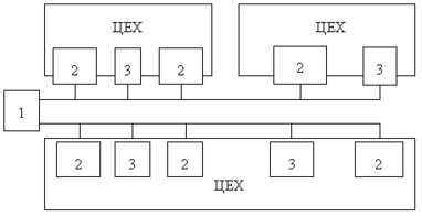 В узловой подстанции завода или промышленного узла 1 (рис.2) электроэнергия напряжением 110 и 220 кВ преобразуется в электроэнергию напряжением 10 кВ. Из узловой подстанции электроэнергия поступает в трансформаторные подстанции цехов и других объектов завода.