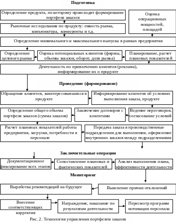 Деятельность по формированию загрузки промышленного предприятия работой связана преимущественно с деятельностью предприятия во внешней среде, динамикой и качеством совокупности факторов рыночного спроса и производственных подпроцессов предприятия, связанных в внешней средой. Возможность приобретения заказов промышленным предприятием определяется с помощью важнейшего подпроцесса управления портфелем заказов, технология реализации которого представлена в графовой форме на рис. 2.