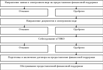 На рисунке 5 видно, что предоставление финансовой поддержки через ГНКО будет осуществляться для представителей малого и среднего предпринимательства по следующим этапам: