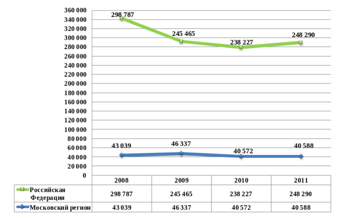 За период с 2008 по 2011 год число малых и средних предприятий в Российской Федерации сократилось на 50 497 предприятий, что составляет сокращение относительно 2008 года на 16,9 %. Количество малых и средних предприятий на территории московского региона за период с 2008 по 2011 год сократилось на 2 451 предприятие, что составляет 5,7 %.