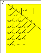 Электроны размещаются последовательно на орбиталях, характеризуемых возрастанием суммы главного и орбитального квантовых чисел (n+l); при одинаковых значениях этой суммы раньше заполняется орбиталь с меньшим значением главного квантового числа n