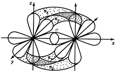 связь, при которой перекрывание АО находится под углом к воображаемой линии, соединяющей ядра взаимодействующих атомов