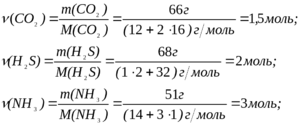 Задача. За 1 с в единице реакционного пространства образуется по трем реакциям 66 г СО2, 68 г Н2S и 51 г NН3. Скорость образования какого из веществ больше?