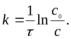 где с – текущая концентрация вещества в момент времени τ, с0 – начальная концентрация, k – константа скорости, τ – время.