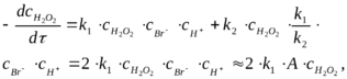 где А = const, т. к. концентрация ионов брома, как катализатора не должна существенно изменяться, как и концентрация ионов водорода в кислой среде.