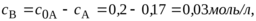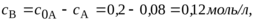 сА = сВ = 0,2 – 0,06 = 0,14 (моль/л).
