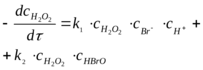 корость реакции по пероксиду водорода может быть выражена следующим образом: