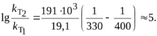 огарифм отношения констант скоростей реакции при температурах Т2 и Т1 соответственно равен