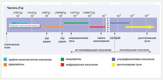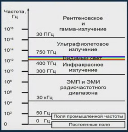 Из представленного диапазона частот электромагнитных излучений нас в первую очередь интересуют ЭМИ диапазона радиочастот, как наиболее часто встречающиеся в промышленности и в повседневной практике.