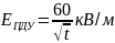 В диапазоне 20 ÷ 60 кВ/м допустимое время пребывания персонала в ЭСП без средств защиты (tдоп) равно