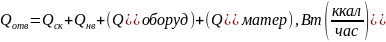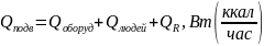 Тепло, отводимое из рабочего помещения, складывается из следующих составляющих:
