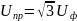 - линейное напряжение сети, т.е. напряжение между фазными