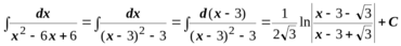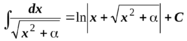 (интеграл №19 из табл. 10.3.неопределённых интегралов). Здесь подынтегральная функция состоит из единственного множителя; можно опять попытаться сделать такую замену переменной, чтобы корень извлёкся. Структура подкоренного выражения подсказывает эту замену: