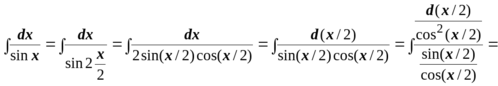 . Интеграл свёлся к интегралу от квадрата косинуса. При интегрировании чётных степеней синуса и косинуса часто применяются формулы, выражающие