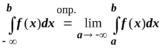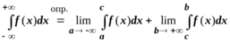 - произвольная (собственная) точка числовой оси; интеграл называется сходящимся, если существуют и конечны оба входящих в определение предела. Пользуясь свойством аддитивности определённого интеграла, можно показать, что существование конечных пределов и их сумма не зависят от выбора точки