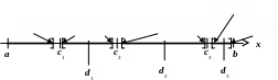 12.2.1.5. Несколько особенностей на промежутке интегрирования. Этот случай сводится к предыдущим. Пусть, например, функция имеет бесконечные пределы при стремлении аргумента к внутренним точкам