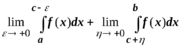 , и интегрируема по любому отрезку, не содержащему эти точки. Тогда несобственный интеграл определяется как