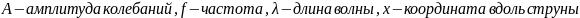 Колебания ограниченной, закрепленной на концах струны, являющиеся стоячими волнами задаются уравнением: