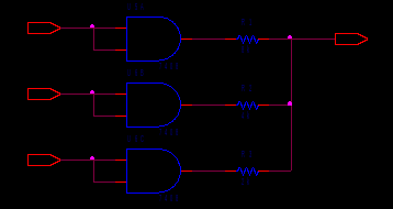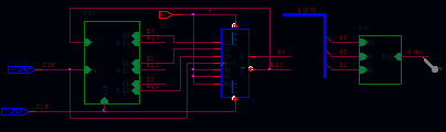 На рис.4. приведен пример схемы блока асинхронного счетчика на JK триггерах, а на рис.5 - пример схемы блока трехразрядного двоичного цифроаналогового преобразователя (ЦАП) с источниками напряжения и весовыми резисторами. В этих схемах для наглядности входы имеют порты PORTLEFT-L, а выходы – порты PORTRIGHT-L.