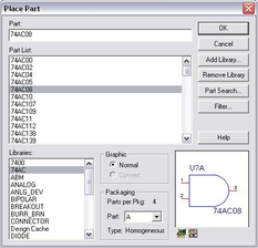 2.1. Для составления схемы необходимо подключить библиотеки компонентов (элементов). Для этого в правой части экрана в меню - выбрать значок PLACE PART