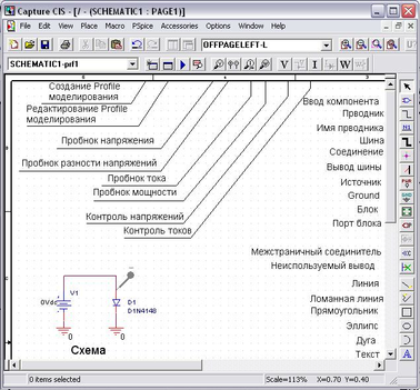 Рис. 1 Рабочее окно редактора схем