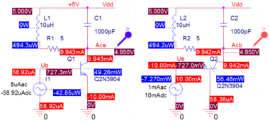 Рис.16. Схемы рис.16 с включенными индикаторами постоянных составляющих токов, напряжений и мощностей.
