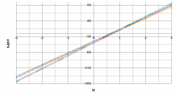 Настроим установку при зеленном фильтре. Получим четкую дифракционную картину. Заменим светофильтр на красный и добьемся оптимальных условий наблюдения дифракционных полос.