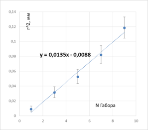 | N Габора | R(экран, ср.), мм | R(гологр.), мм |
