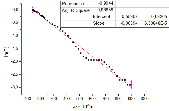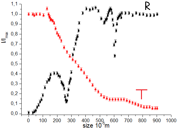 Анализируем часть онного с точки с size = 139*10-5м, где начинается падение интенсивности.