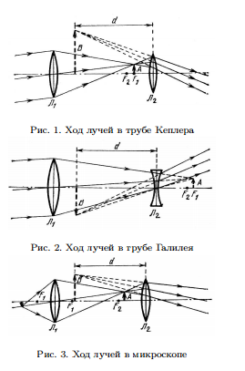 Важно отметить, что изображение В находится на удобном от окуляра расстоянии d, наиболее удобном для аккомодации глаза. Полагается, что глаз аккомодирован на бесконечность.