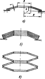 Рис. 6.35. Поперечное сечение дисковой пружины (а) и соединения дисковых виброизоляторов параллельное (б) и последовательное (в)