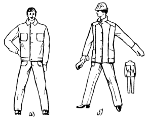 Рис. 7.1. Мужской (а) и женским (б) костюмы для защиты