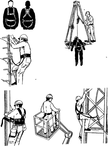 Безопасное проведение работ обеспечивается также путем применения индивидуальных защитных устройств. Так, при работе на высоте, в колодцах и других ограниченных объемах необходимо использовать спасательные пояса, страхующие канаты (рис. 7.8), а также СИЗ.