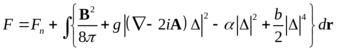Вычисляем изменение свободной энергии нити (отнесенную к единице длины нити) по сравнению со свободной энергией сверхпроводника без магнитного поля. В последнем случае