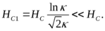 Возникновение нити термодинамически выгодно, когда эта величина становится отрицательной. Отсюда для нижней критической напряженности получим