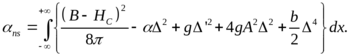. Удвоение заряда электрона есть следствие эффекта Купера, при котором пары электронов с противоположными импульсами и спинами образуют связанное состояние. Подынтегральное выражение в (2) в данной геометрии задачи зависит только от координаты x. Поэтому выражение (2) можно далее записать в виде интеграла только по x. С учетом сказанного перепишем (2) в виде (далее свободная энергия отнесена к единице поверхности раздела)